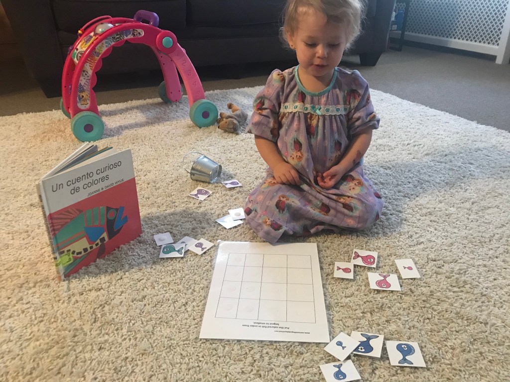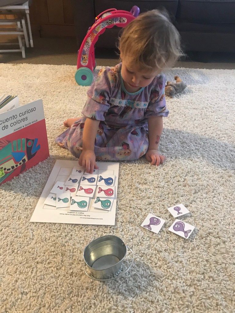 I don’t know how, but God gave me a little extra time this week, so 95% of all we did was all Mama made resources. So lots of resources for you to download today! There is something about lamination and velcro that Emma and I are obsessed with. I can create her a laminated and velcro activity and it is like 45 minute entertainment. We had SO much fun, I don’t even think I taught the letter F which was one of the objectives for making all Rainbow Fish activities and reading all the Rainbow Fish books by Marcus Pfister this week. Total Mama fail on that! The best part of the resources I made this week, is that they can be implemented in both English and Spanish. Here is an explanation, free download, and a few pictures to see it in action.