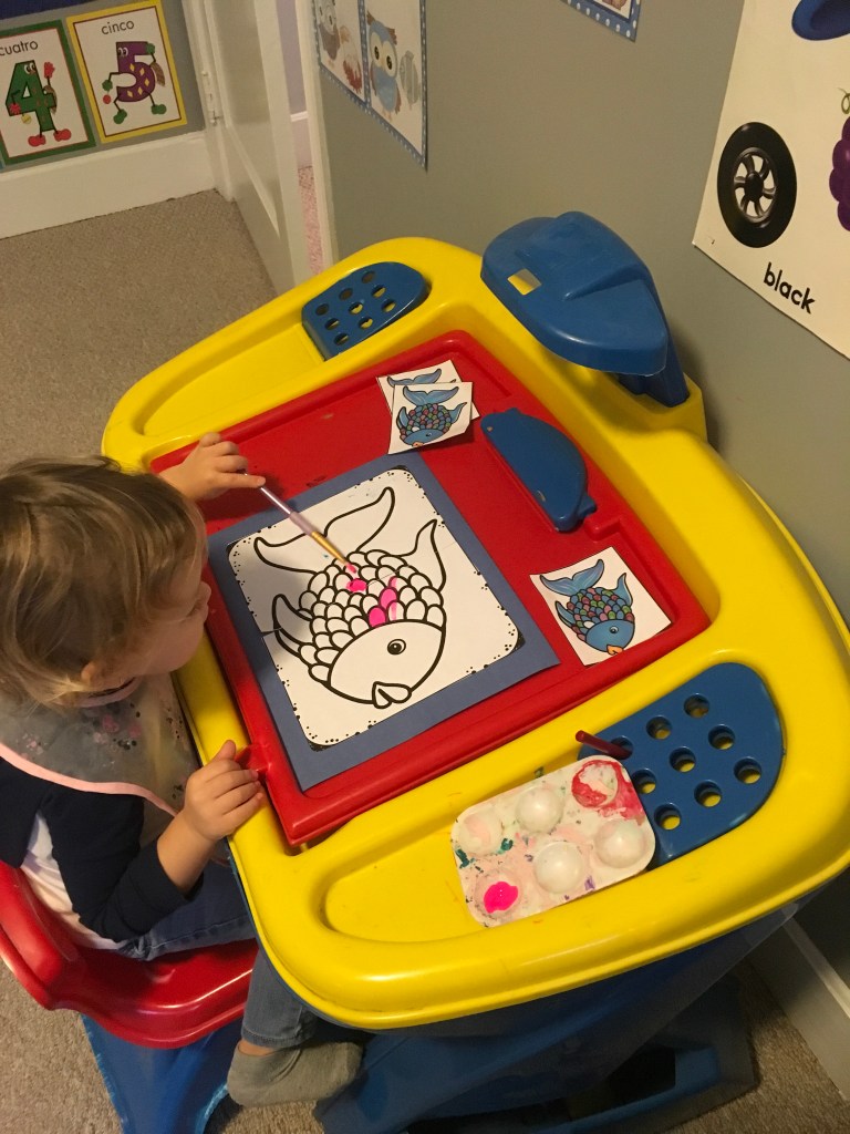 - This activity is super simple, I would just say a letter or sound of a letter and Emma had to dot paint that letter on the Rainbow Fish. Great practice and assessment tool without her even knowing it! It also gives a little bit more intentionality in using dot paints.