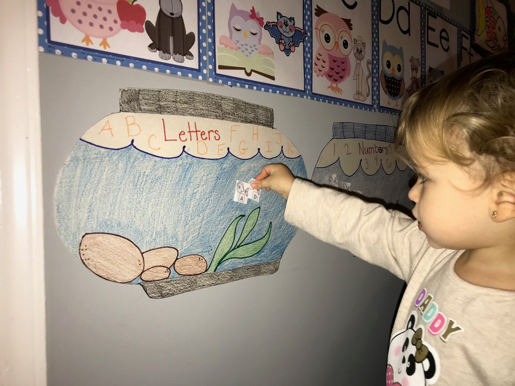 - In this activity Emma had to put the number or letter fish back in the correct number or letter water bowls. She got into this one, so did Mama :). This is a great assessment if your baby knows the difference between a letter and number.