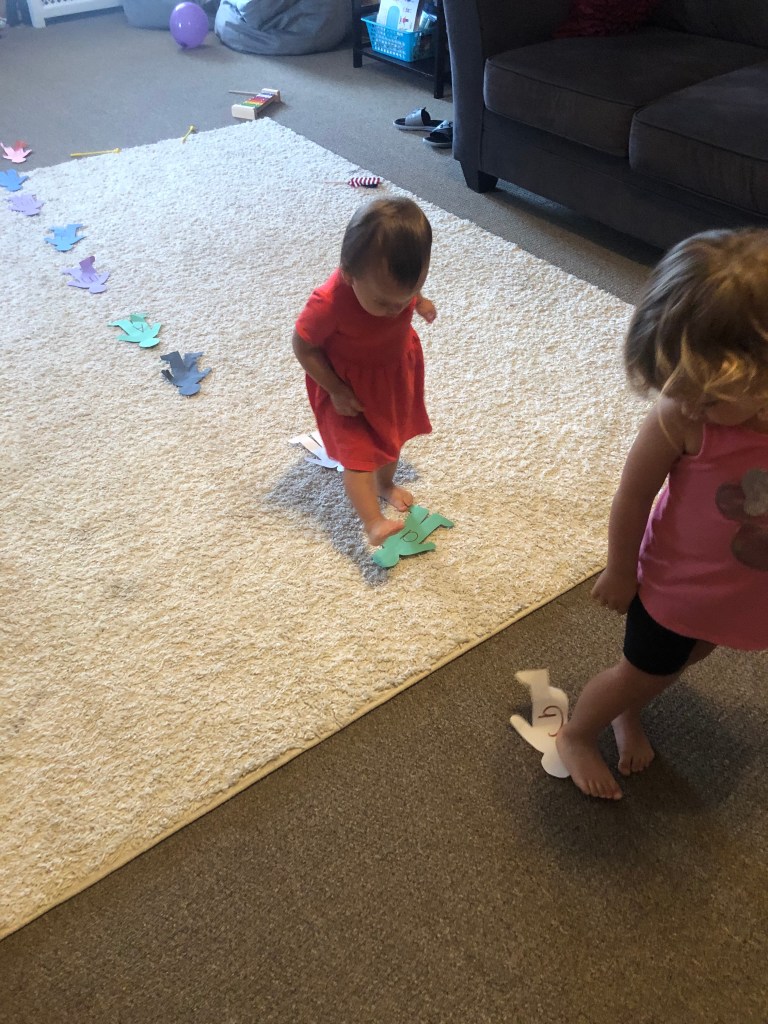 Letters: Letter D find, fill, name sorting, and letter jumping and dancing to music.